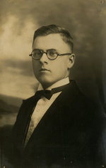 Description :PHOTO EN BUSTE D'ARTHUR OLIVIER EN TENUE DE GALA (OU EN HABIT DE FINISSANT AU SEMINAIRE ST-CHARLES). L'ALLURE GENERALE, LES VERRES RATTACHENT CETTE PHOTO A LA PERIODE DES ETUDES CLASSIQUES.