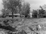 Description :VUE D'UN TERRAIN DONT ON A COMMENCE A CREUSER. A L'ARRIERE-PLAN, ON APERCOIT UN COMMERCE APPELE "AU ROND POINT".