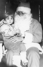 Description :EMILIE LACHARITE EST ASSISE SUR LES GENOUX DU PERE NOEL.