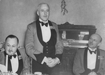 Description :DANS UNE GRANDE SALLE, UNE CENTAINE DE PERSONNES SONT ASSISES. 1ERE RANGEE DE GAUCHE A DROITE: PHILEMON VALLERAND, PRESIDENT DU CLUB ST-FRANCOIS; HENRI THIBAULT, PRESIDENT DU TUQUE ROUGE; LE CHANOINE NAPOLEON CODERE, PROCUREUR DU SEMINAIRE; CY...