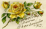 Description :C'EST UNE TIGE DE ROSES JAUNES AU-DESSOUS DE LAQUELLE FIGURE LA MENTION EN TITRE.