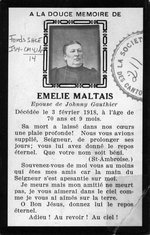 Description :PORTRAIT DE EMILIE MALTAIS, EPOUSE DE JOHNNY GAUTHIER, DECEDEE LE 3 FEVRIER 1918 A L'AGE DE 70 ANS.