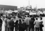 Description :2.1: DE NOMBREUX VISITEURS SONT ASSEMBLES DANS LA COUR DU BUREAU DES TRAVAUX PUBLICS, RUE DES GRANDES FOURCHES. ILS EXAMINENT LA MACHINERIE LOURDE POSSEDEE PAR LA VILLE. 2.2: DES PERSONNES REGARDENT DES PANNEAUX D'EXPOSITION PRESENTANT LE SERV...