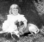 Description :6.1 - PETITE FILLE EN ROBE BLANCHE ASSISE SUR L'HERBE EN COMPAGNIE D'UN BOULEDOGUE. 6.2 - PETITE FILLE EN ROBE BLANCHE ASSISE SUR L'HERBE EN COMPAGNIE D'UN CHIEN DE GRANDE TAILLE.